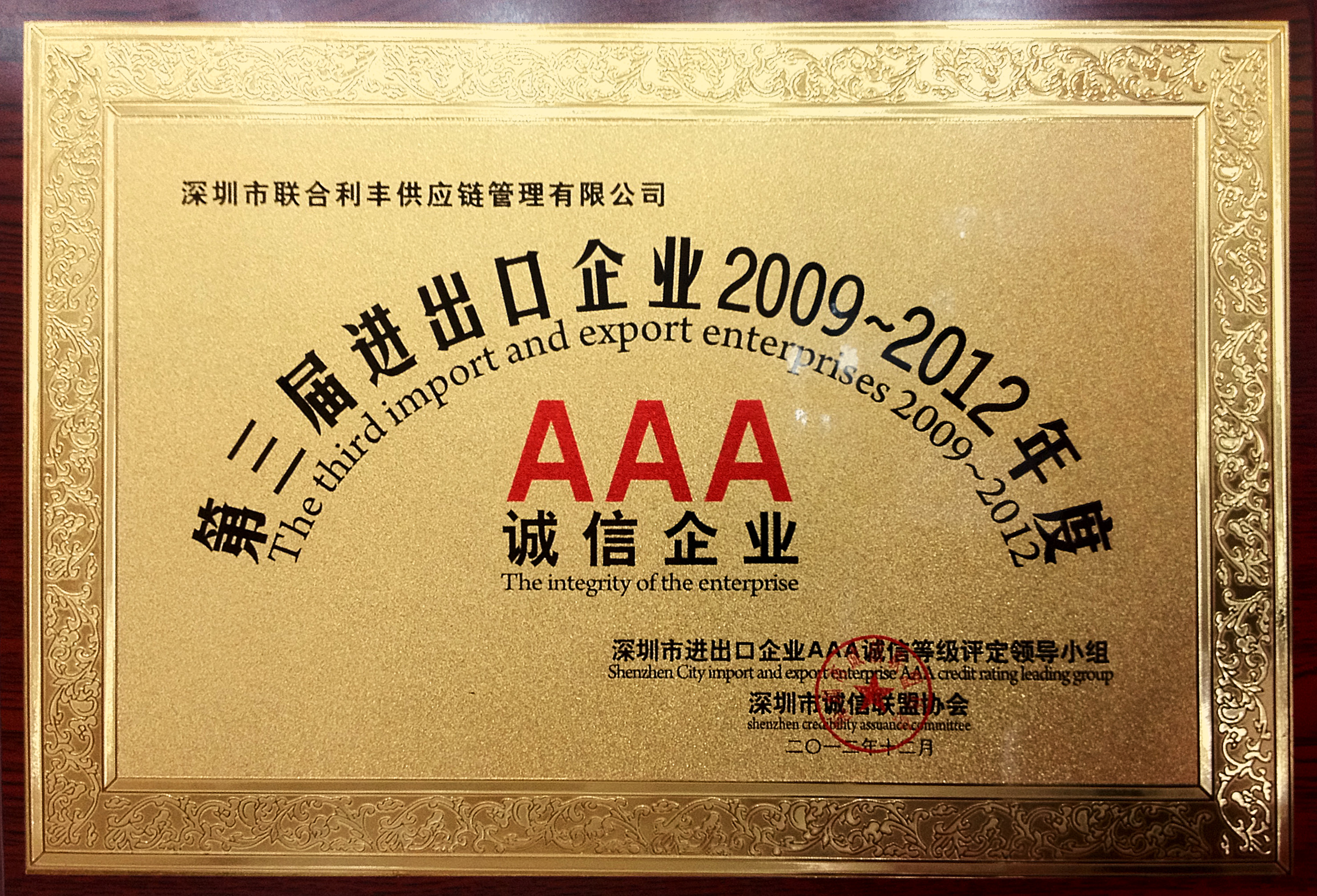 ● AA-level credit management enterprise by the General Administration of Quality Supervision, Inspection and Quarantine